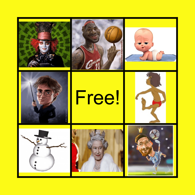 This bingo card has 16 images and a free space.