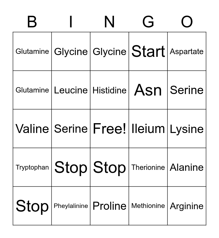 ⚠ This card has duplicate items: Lysine (2), Glycine (2), Glutamine (2), Serine (2), Stop (2)