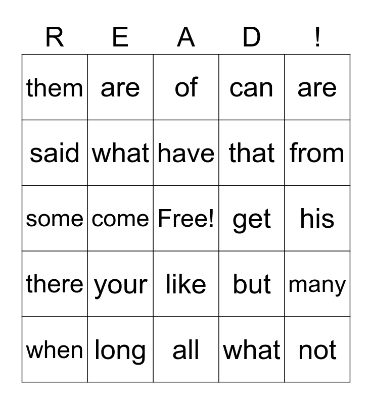 This bingo card has a free space and 39 words: the, and, was, what, when, like, have, has, are, there, come, can, not, his, get, your, will, them, up, but, said, all, that, from, than, one, into, with, sit, are, they, do, of, long, what, find, many, some and were.