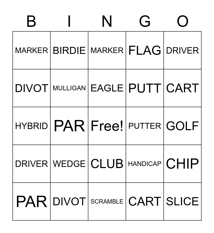 ⚠ This card has duplicate items: EAGLE (2), PAR (2), DRIVER (2), MARKER (2), DIVOT (2), CART (2)