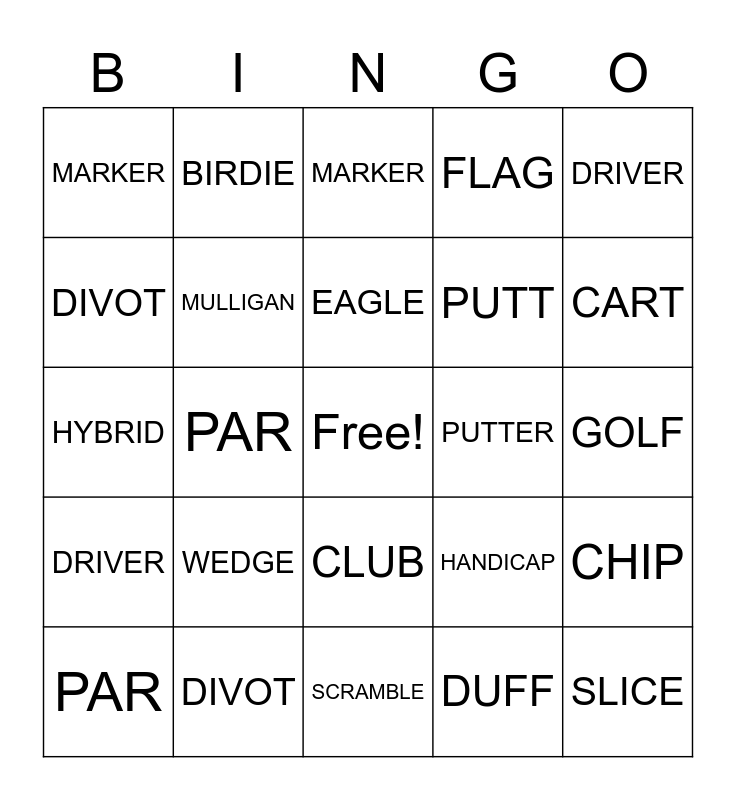 ⚠ This card has duplicate items: EAGLE (2), PAR (2), DRIVER (2), MARKER (2), DIVOT (2)