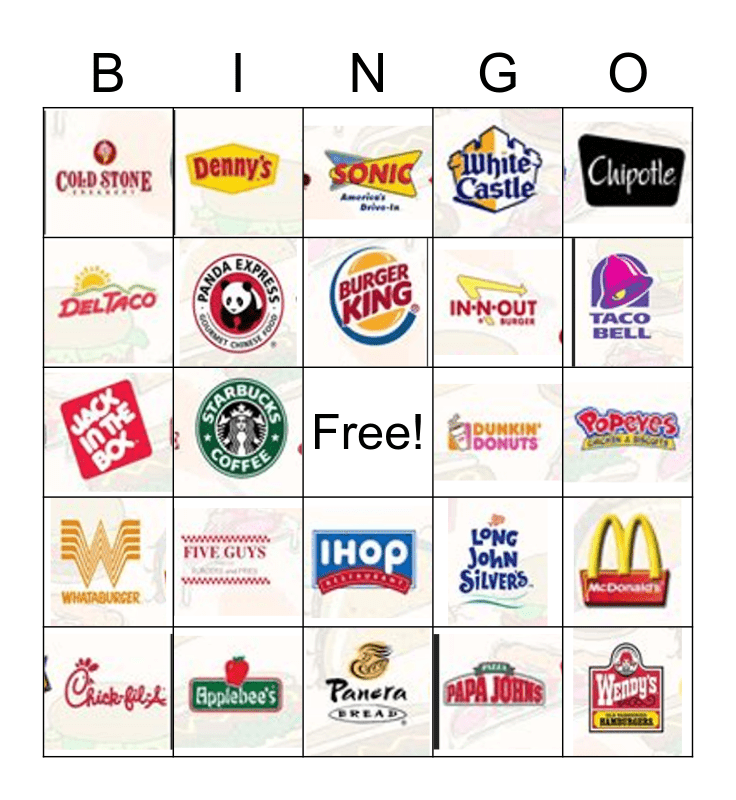 Fast Food Bingo Card