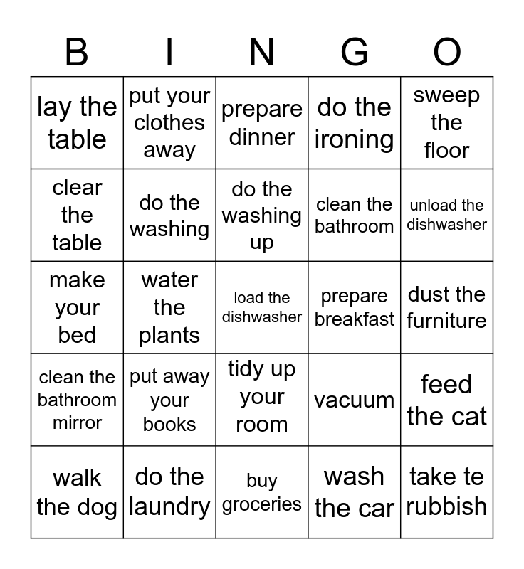 Household chores | Unit 1&2 | Chores | CLEANING BINGO | WHAT HAVE YOU DONE TODAY?