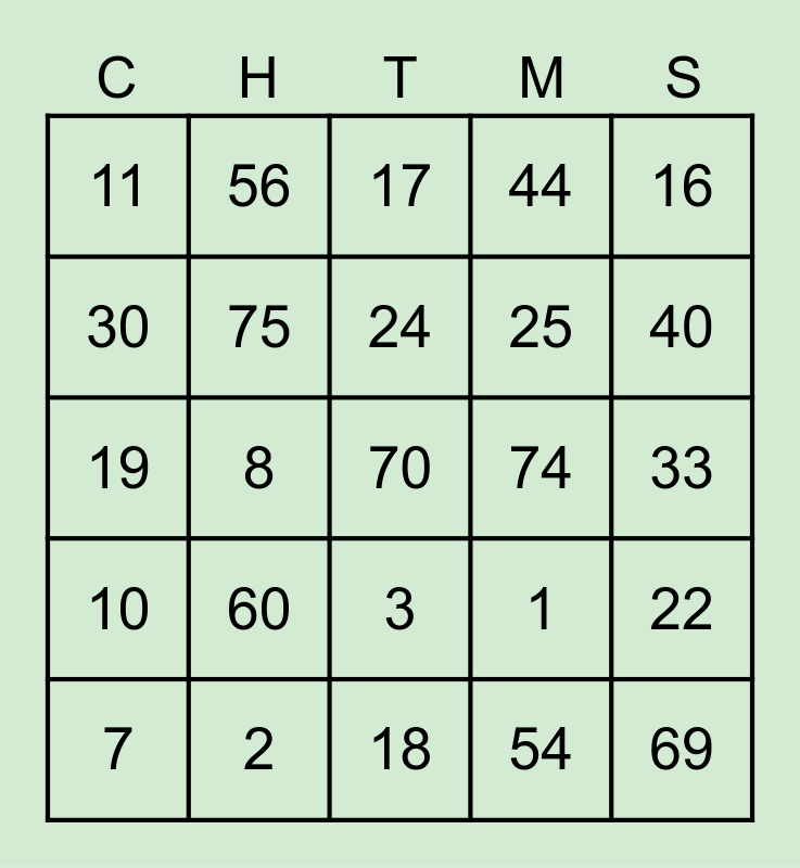 This bingo card has a free space and 24 words: 60, 2, 24, 7, 16, 11, 30, 56, 74, 3, 25, 19, 1, 22, 75, 54, 33, 17, 40, 8, 69, 10, 44 and 18.