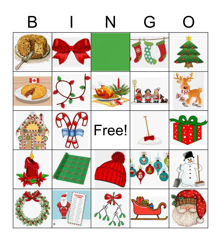 This bingo card has 31 images and a free space.