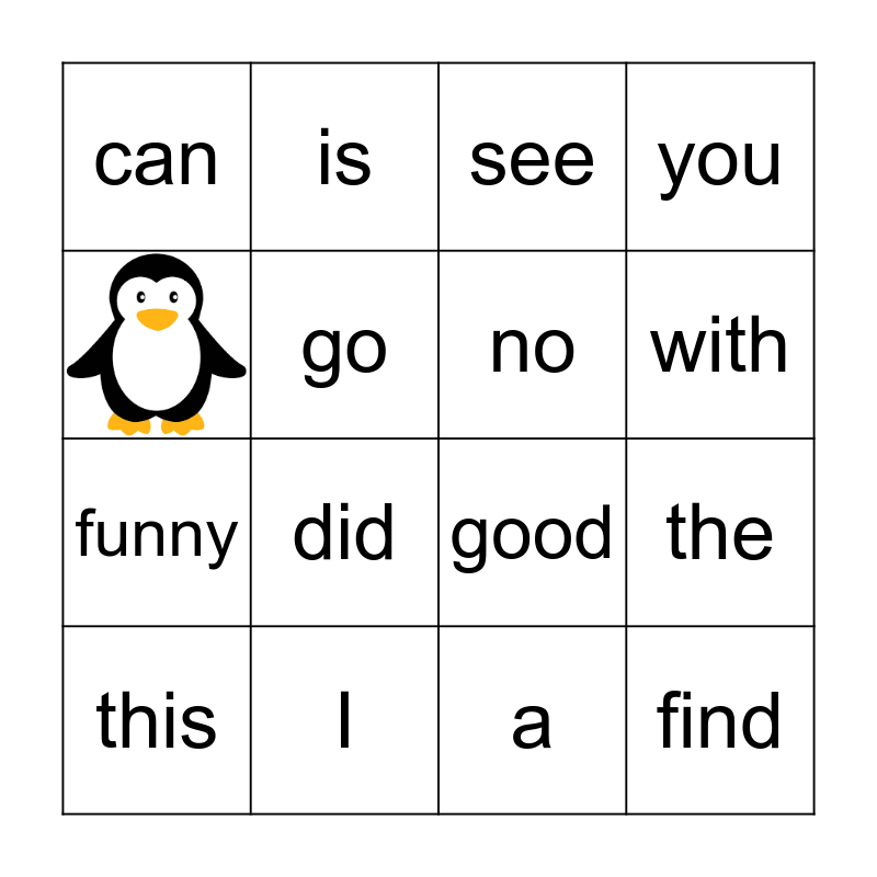 This bingo card has 1 images and 15 words: I, the, see, can, funny, is, good, a, go, this, you, did, with, no and find.