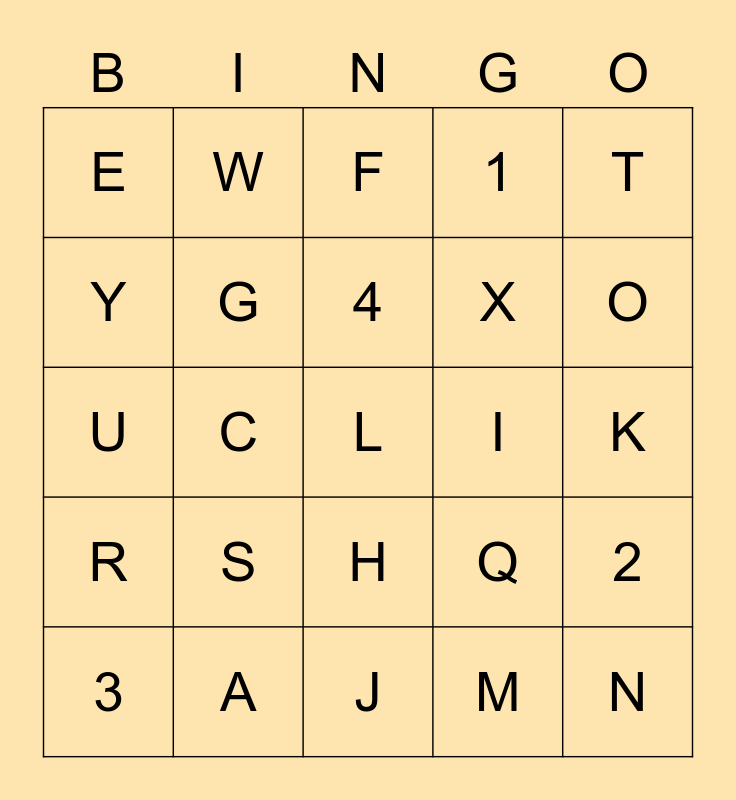 This bingo card has 30 words: A, B, C, D, E, F, G, H, I, J, K, L, M, N, O, P, Q, R, S, T, U, V, W, X, Y, 1, 2, 3, 4 and 5.