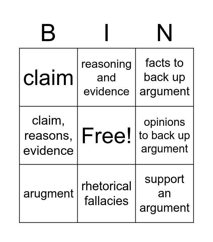 Argument | Argument Bingo | Debate | Argumentaver Vocabv | Persuasion Bingo