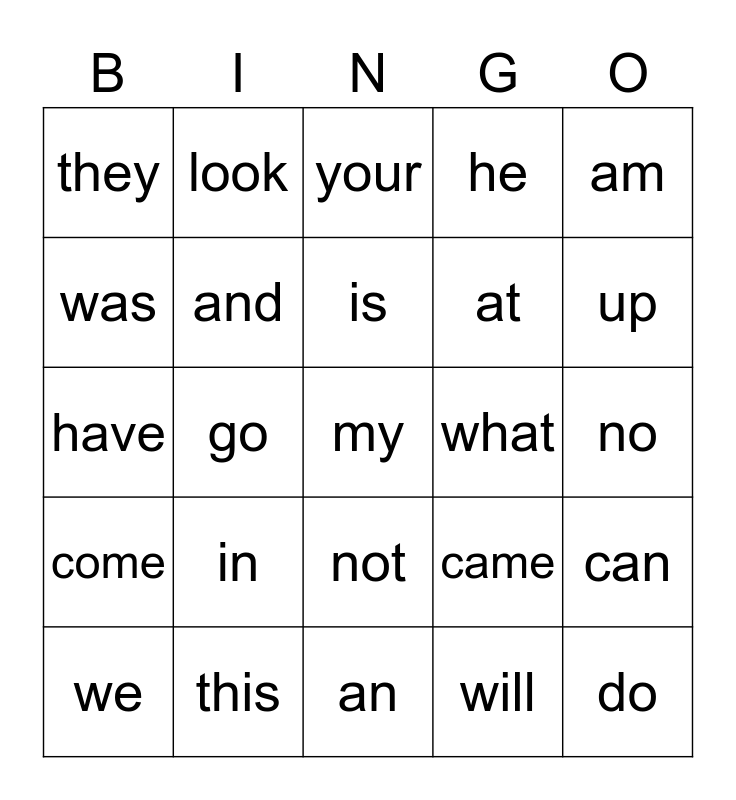 This bingo card has 38 words: it, me, to, and, can, in, is, the, am, at, go, he, my, no, was, come, she, your, that, what, they, this, up, we, you, an, do, see, so, like, on, not, will, look, how, came, have and said.