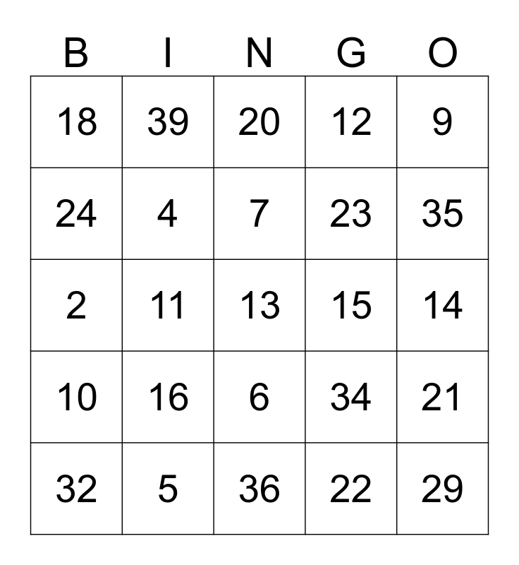 This bingo card has 40 words: 1, 2, 3, 4, 5, 6, 7, 8, 9, 10, 11, 12, 13, 14, 15, 16, 17, 18, 19, 20, 21, 22, 23, 24, 25, 26, 27, 28, 29, 30, 31, 32, 33, 34, 35, 36, 37, 38, 39 and 40.