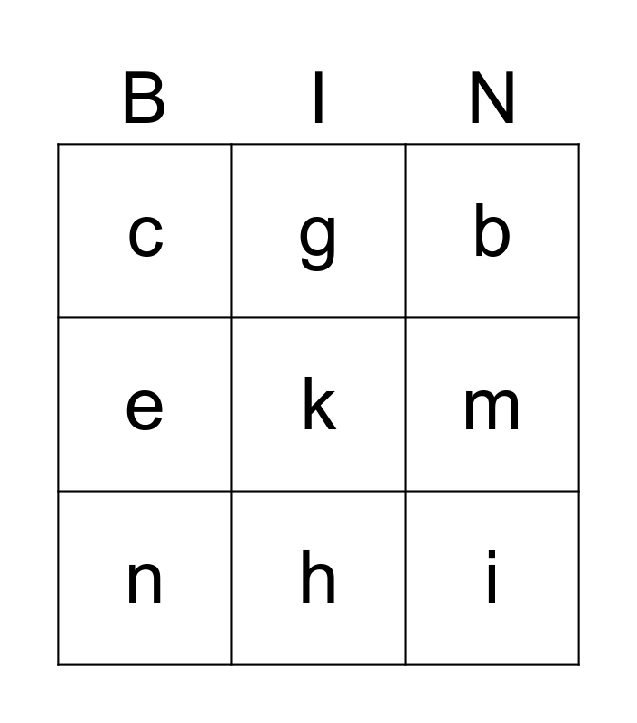 This bingo card has 18 words: Free!, a, b, c, d, e, f, g, h, i, l, k, j, m, n, o, p and i.