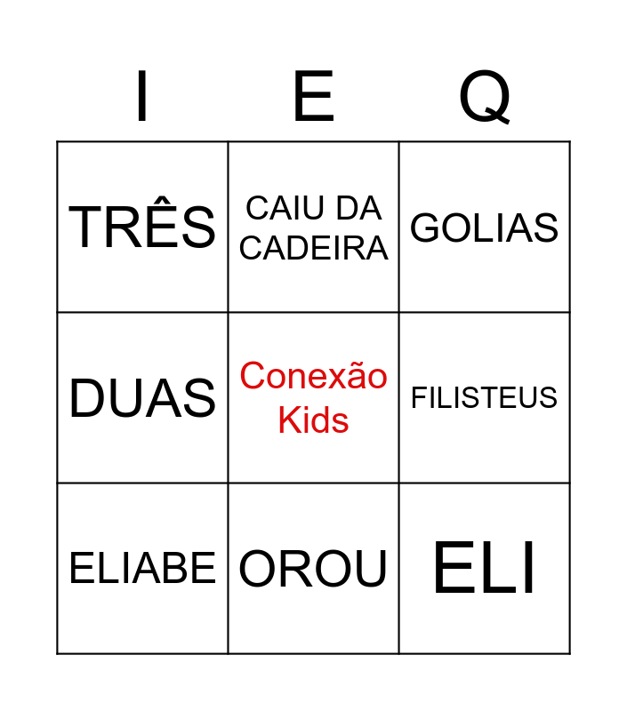 This bingo card has a free space and 24 words: ANA, ELCANA, OROU, 3 FILHOS e 2 FILHAS, ELI, TRÊS, FILISTEUS, CAIU DA CADEIRA, SAUL, DESOBEDECEU, CORAÇÃO, DAVI, SETE, JESSÉ, ELIABE, PASTOR DE OVELHAS, LIRA, GOLIAS, CINCO, UMA, COMANDANTE, INVEJA, DUAS and NÃO.