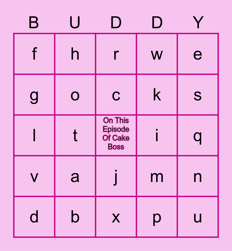 This bingo card has a free space and 24 words: a, b, c, d, e, f, g, h, i, j, k, l, m, n, o, p, q, r, s, t, u, v, w and x.