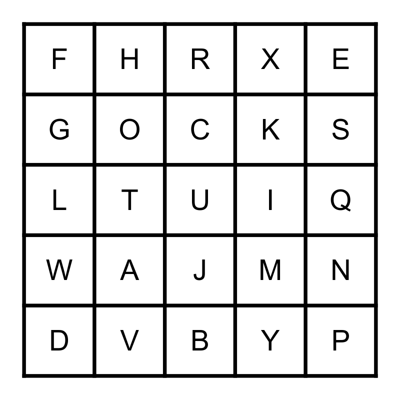 This bingo card has 25 words: A, B, C, D, E, F, G, H, I, J, K, L, M, N, O, P, Q, R, S, T, U, V, W, X and Y.