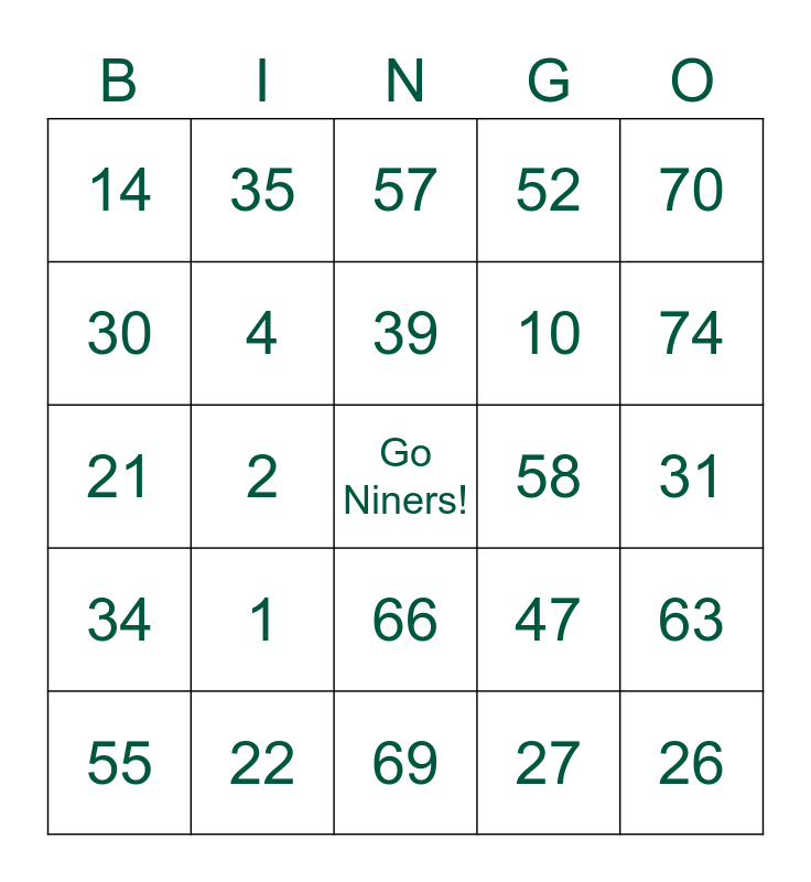 This bingo card has a free space and 24 words: 1, 22, 39, 55, 70, 14, 30, 35, 58, 66, 10, 21, 47, 63, 4, 27, 31, 57, 74, 2, 26, 34, 52 and 69.