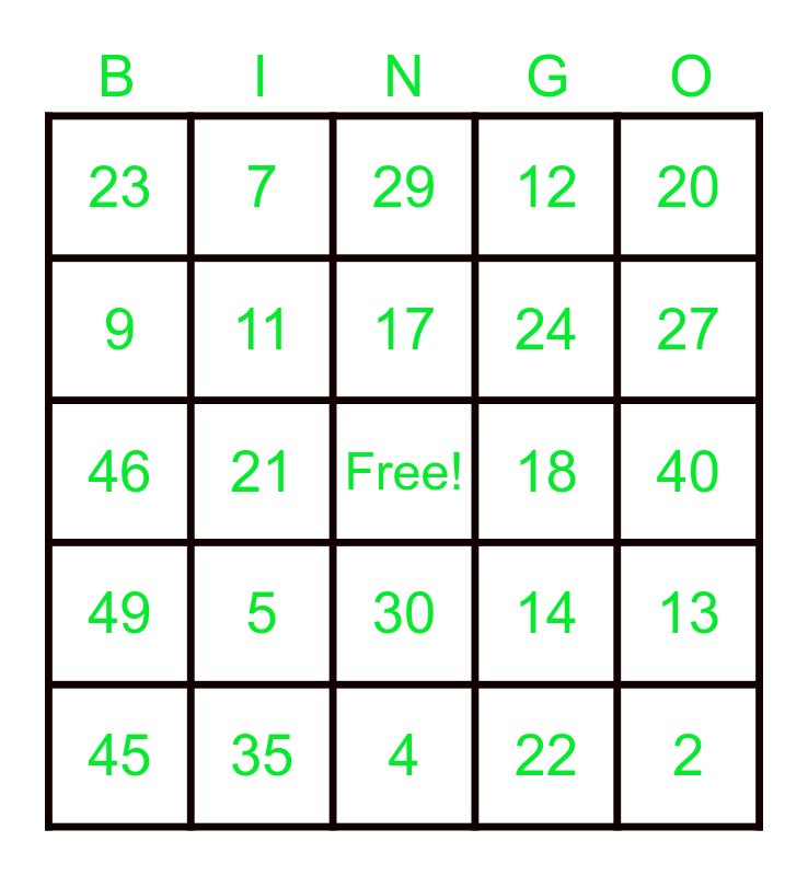 This bingo card has a free space and 50 words: 1, 2, 3, 4, 5, 6, 7, 8, 9, 10, 11, 12, 13, 14, 15, 16, 17, 18, 19, 20, 21, 22, 23, 24, 25, 26, 27, 28, 29, 30, 31, 32, 33, 34, 35, 36, 37, 38, 39, 40, 41, 42, 43, 44, 45, 46, 47, 48, 49 and 50.