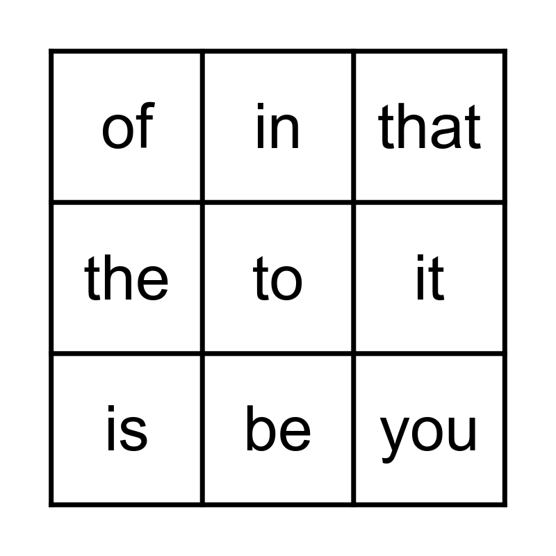This bingo card has 12 words: a, you, to, it, in, that, be, I, of, the, is and and.