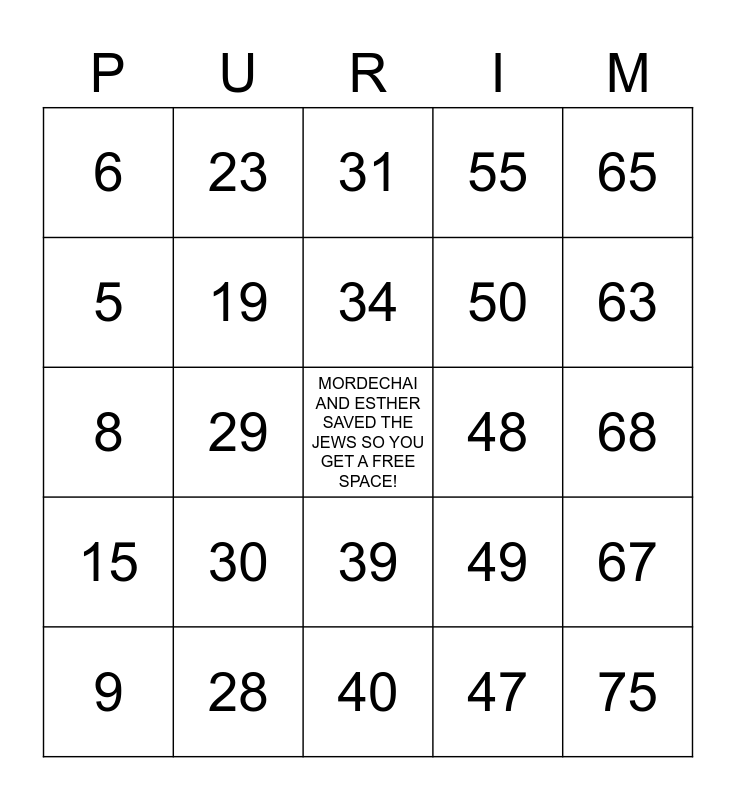 This bingo card has a free space and 75 words: 1, 16, 31, 46, 61, 2, 17, 32, 47, 62, 3, 18, 48, 63, 4, 19, 33, 49, 64, 5, 20, 34, 50, 65, 6, 21, 35, 51, 66, 7, 22, 36, 52, 67, 8, 23, 37, 53, 68, 9, 24, 38, 54, 69, 10, 25, 39, 55, 70, 11, 26, 40, 56, 71, 12, 27, 41, 57, 72, 13, 28, 42, 58, 73, 14, 29, 43, 59, 74, 15, 30, 44, 60, 75 and 45.