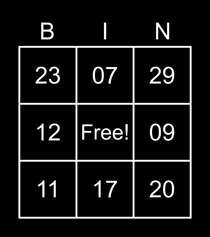This bingo card has a free space and 50 words: 01, 02, 03, 04, 05, 06, 07, 08, 09, 10, 11, 12, 13, 14, 15, 16, 17, 18, 19, 20, 21, 22, 23, 24, 25, 26, 27, 28, 29, 30, 31, 32, 33, 34, 35, 36, 37, 38, 39, 40, 41, 42, 43, 44, 45, 46, 47, 48, 49 and 50.