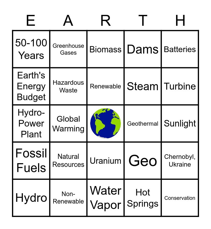 Energy Sources Bingo | Energy Bingo | Energy Bingo | Natural Resources, Minerals, and Mining | Energy