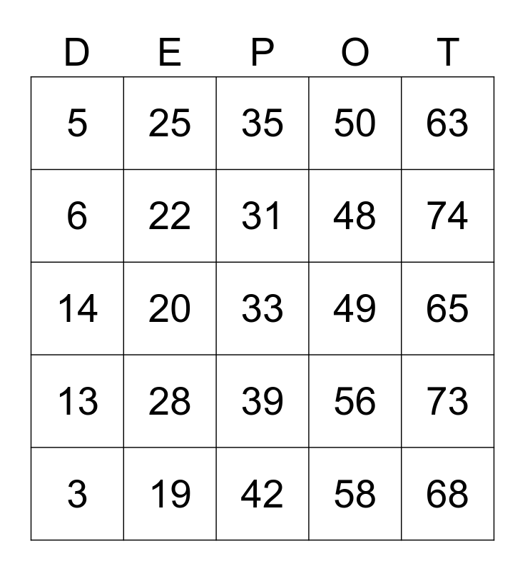 This bingo card has a free space and 74 words: 1, 16, 31, 46, 61, 2, 17, 32, 47, 62, 3, 18, 48, 63, 4, 19, 34, 49, 64, 5, 20, 35, 50, 65, 6, 21, 36, 51, 66, 7, 22, 37, 52, 67, 8, 23, 38, 53, 68, 9, 24, 39, 54, 69, 10, 25, 40, 55, 70, 11, 26, 41, 56, 71, 12, 27, 42, 57, 72, 13, 28, 43, 58, 73, 14, 29, 44, 59, 74, 15, 30, 45, 60 and 75.