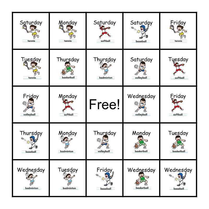 When does Matthew play this sport? Bingo Card