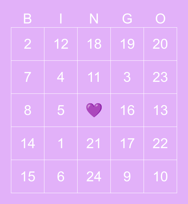 This bingo card has a free space and 24 words: 1, 6, 11, 15, 20, 2, 7, 12, 16, 21, 3, 8, 17, 22, 4, 9, 13, 18, 23, 5, 10, 14, 19 and 24.