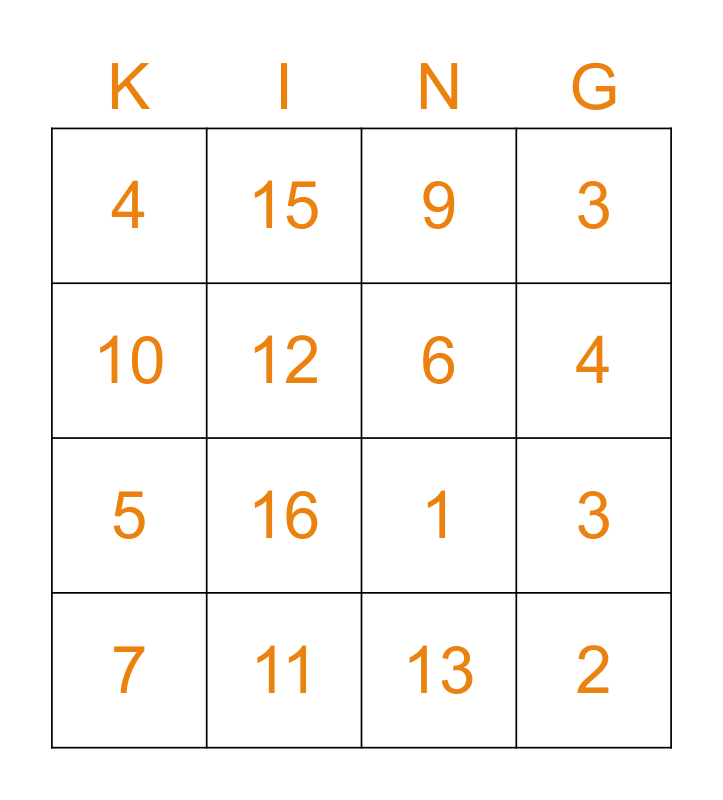 This bingo card has 19 words: 1, 14, 9, 2, 3, 10, 13, 4, 15, 5, 16, 12, 6, 11, 7, 8, 3, 4 and 2.