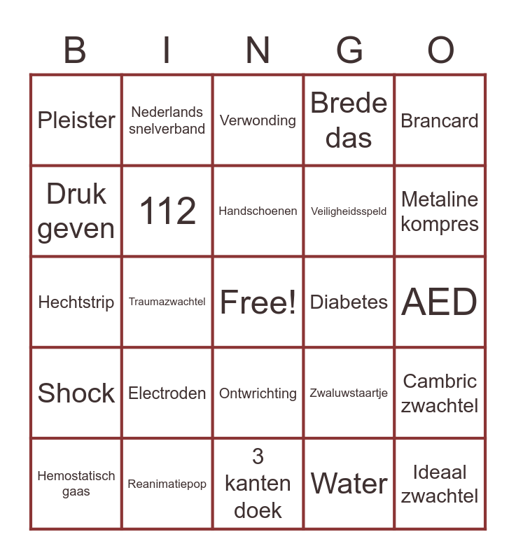 EHBO BINGO | EHBO Theorie | EHBO Theorie | EHBO Theorie | EHBO BINGO