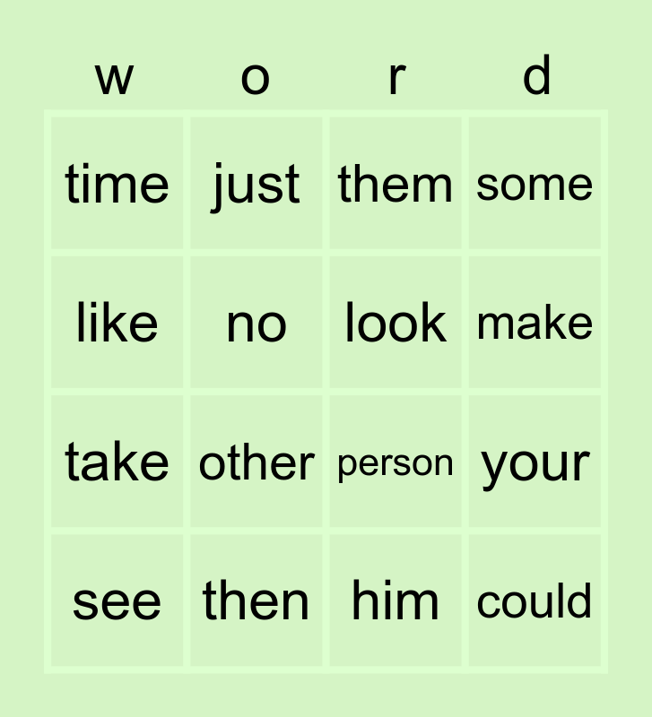 This bingo card has 26 words: wild card, when, make, can, like, time, no, just, him, know, take, person, into, year, your, good, some, could, them, see, other, than, then, now, look and only.