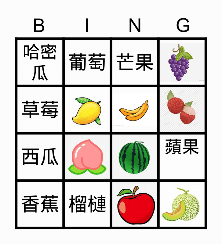水果賓果 Bingo Card
