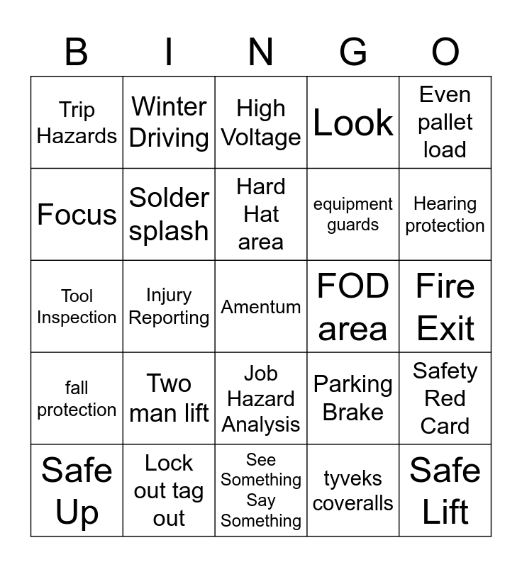 Amentum/Tobyhanna Safety | SAFETY BINGO | Safety Bingo Hollister | Safety Bingo | SSA Safety Bingo