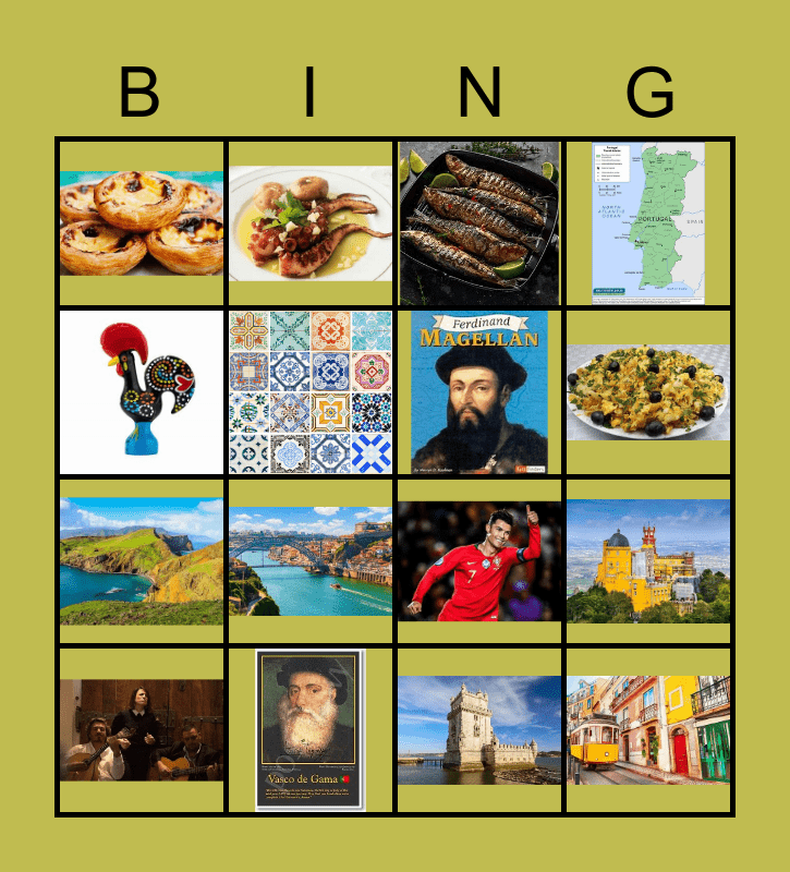 This bingo card has 16 images.