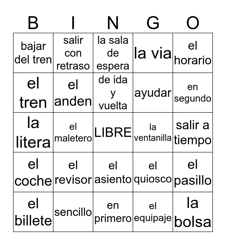 c1 Un Viaje en Tren | El Vocabulario del Capítulo 1 - Un Viaje en Tren | Bingo | Travel Unit Vocabulary | Travel Unit Vocabulary