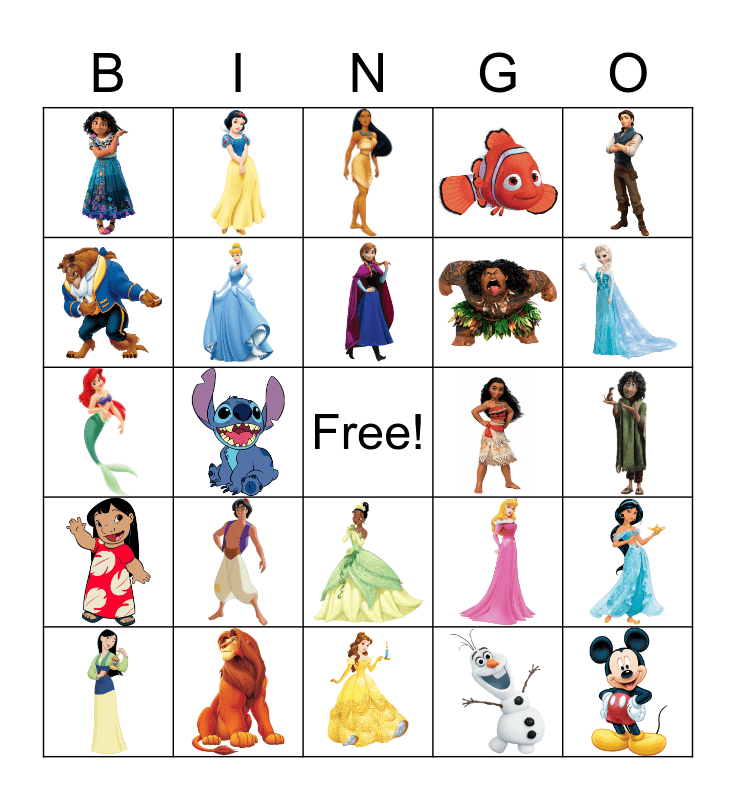 Disney Characters Bingo Card