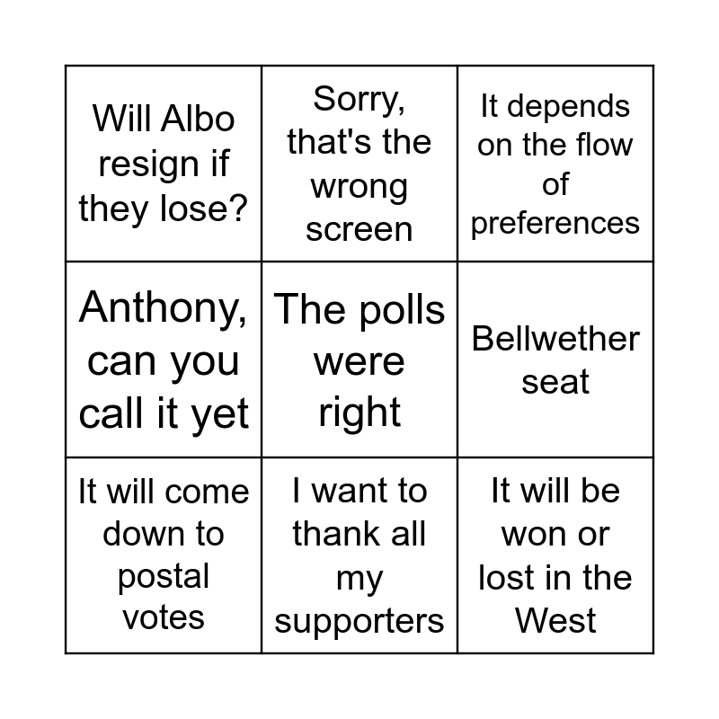 Federal Election BINGO!!! | Federal Election 2022 | Aus Federal Election 2022 | Aus Election 2022 Bingo | Antony Green's 2019 Election Night Bingo