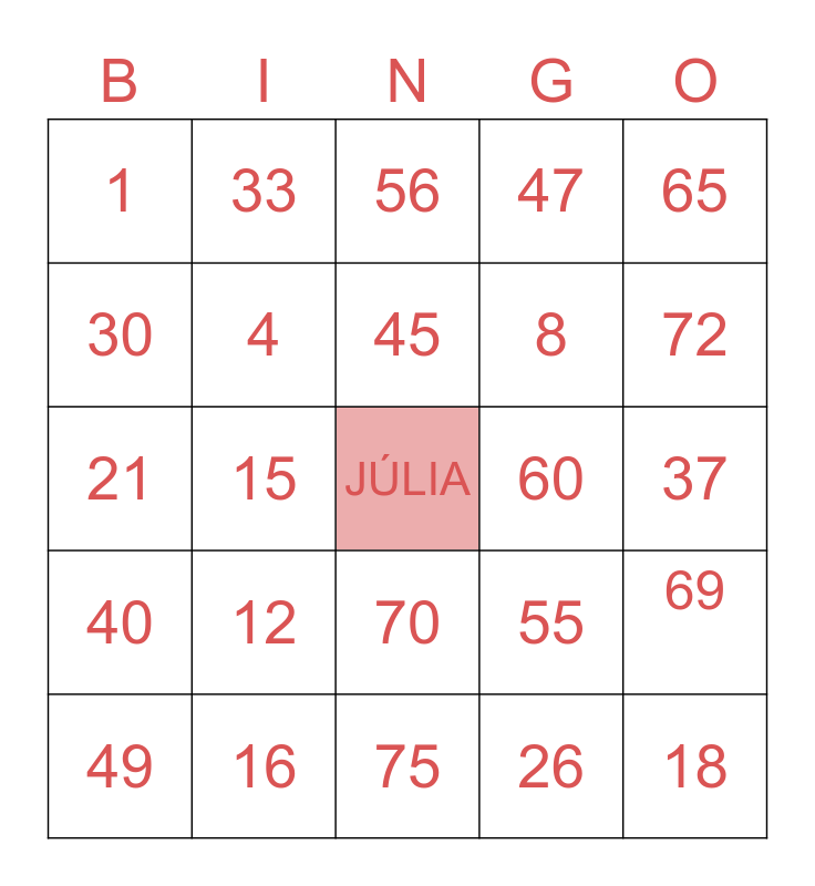 This bingo card has a free space and 24 words: 12, 16, 45, 49, 65, 1, 30, 33, 60, 70, 8, 21, 55, 69, 4, 26, 37, 56, 72, 15, 18, 40, 47 and 75.