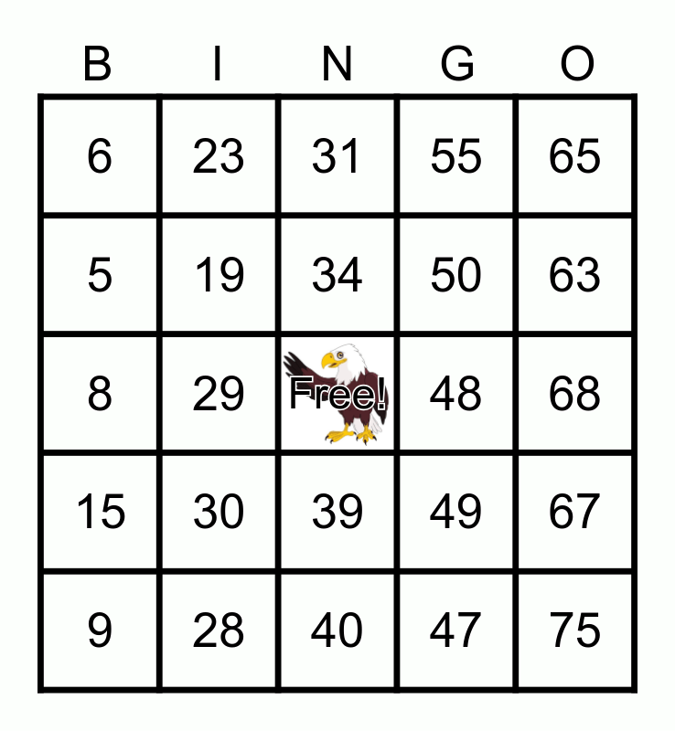 This bingo card has a free space and 75 words: 1, 16, 31, 46, 61, 2, 17, 32, 47, 62, 3, 18, 48, 63, 4, 19, 33, 49, 64, 5, 20, 34, 50, 65, 6, 21, 35, 51, 66, 7, 22, 36, 52, 67, 8, 23, 37, 53, 68, 9, 24, 38, 54, 69, 10, 25, 39, 55, 70, 11, 26, 40, 56, 71, 12, 27, 41, 57, 72, 13, 28, 42, 58, 73, 14, 29, 43, 59, 74, 15, 30, 44, 60, 75 and 45.