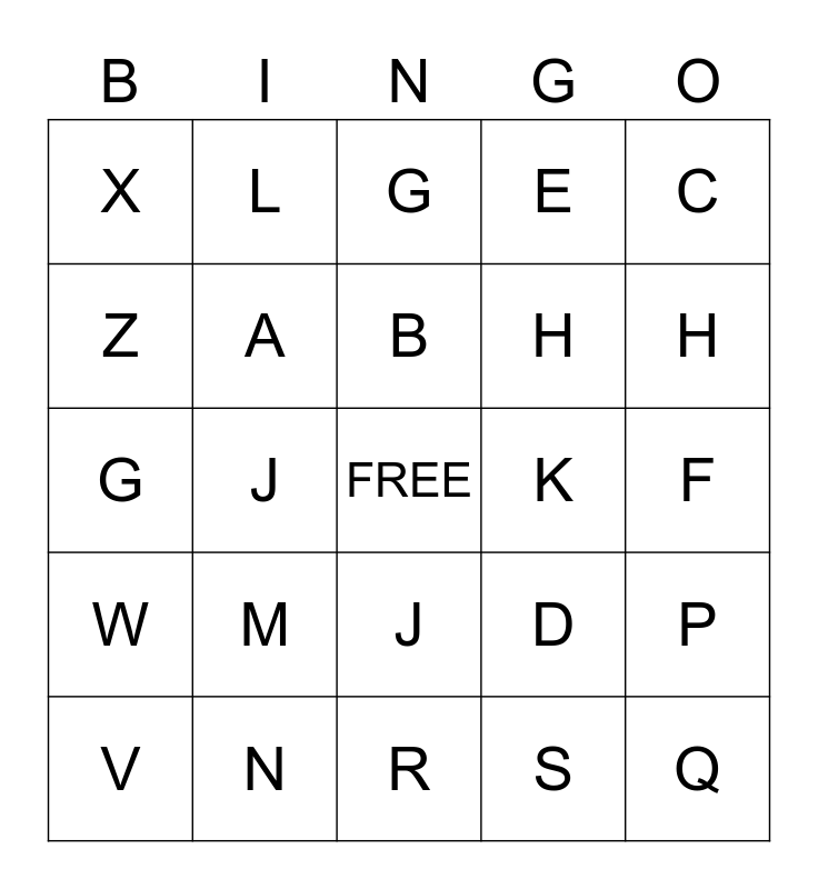 This bingo card has a free space and 24 words: M, N, B, V, C, X, Z, L, K, J, H, G, D, P, A, S, F, G, H, J, Q, W, E and R.