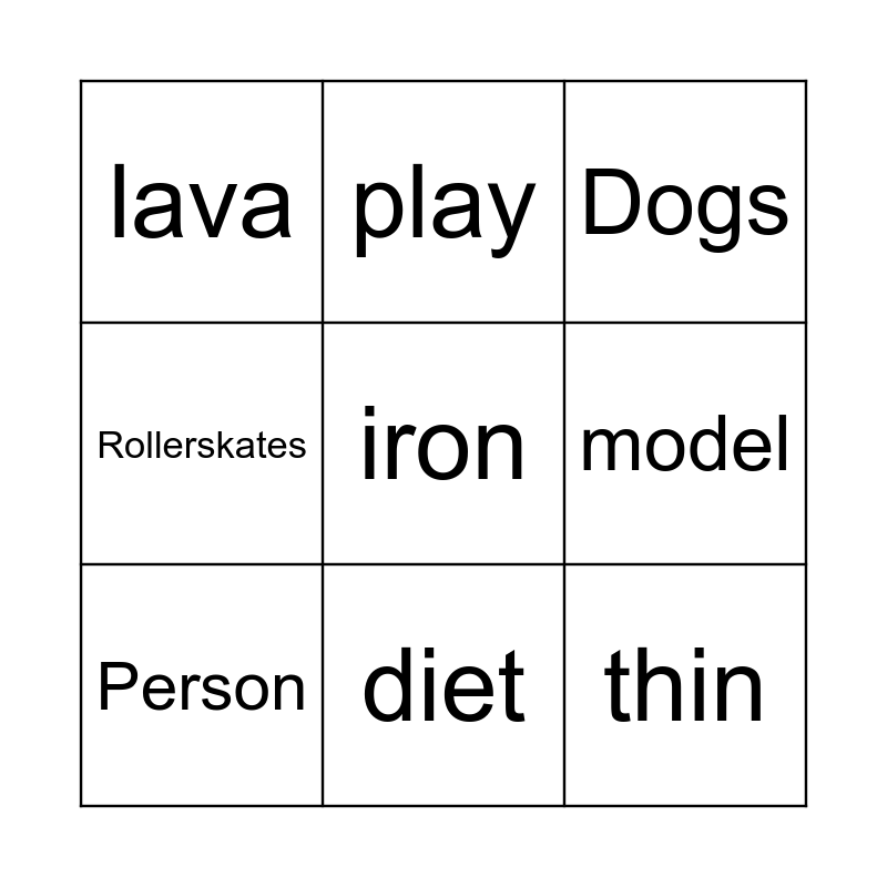 This bingo card has a free space and 24 words: position, lava, diet, think, thin, lava, model, play, Flowers, Bee, Picnickers, Ants, Holding, Hands, Person, Napping, Balloon, Dogs, Frisbee, Stroller, Chess, Players, Rollerskates and Musician.