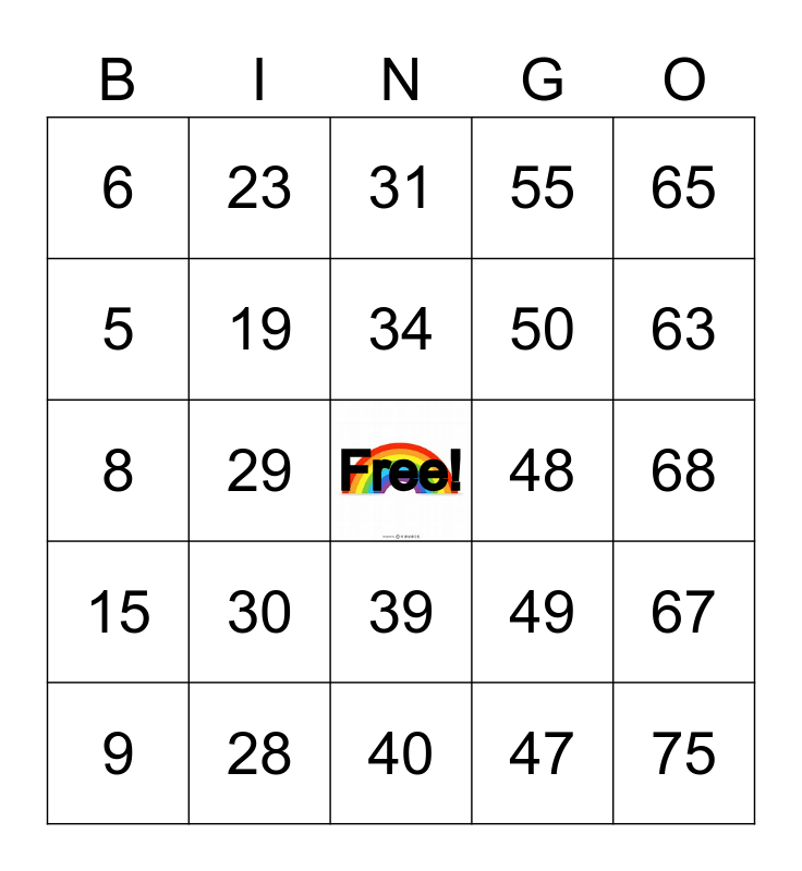 This bingo card has a free space and 75 words: 1, 16, 31, 46, 61, 2, 17, 32, 47, 62, 3, 18, 48, 63, 4, 19, 33, 49, 64, 5, 20, 34, 50, 65, 6, 21, 35, 51, 66, 7, 22, 36, 52, 67, 8, 23, 37, 53, 68, 9, 24, 38, 54, 69, 10, 25, 39, 55, 70, 11, 26, 40, 56, 71, 12, 27, 41, 57, 72, 13, 28, 42, 58, 73, 14, 29, 43, 59, 74, 15, 30, 44, 60, 75 and 45.