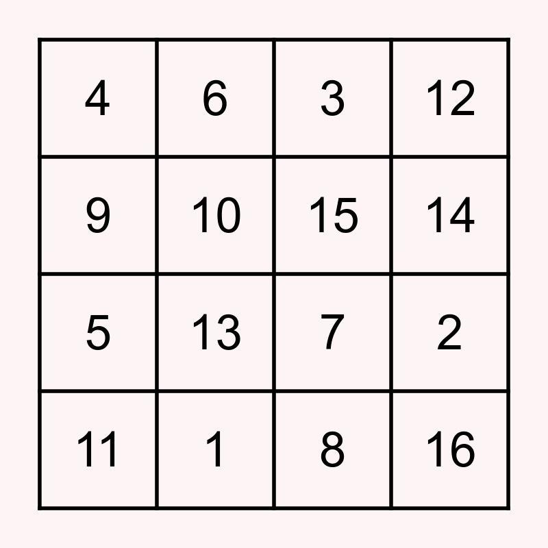 This bingo card has 16 words: 1, 2, 3, 4, 5, 6, 7, 8, 9, 10, 11, 12, 13, 14, 15 and 16.