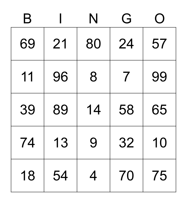 This bingo card has 45 words: 60, 14, 19, 18, 81, 70, 80, 67, 57, 54, 24, 58, 9, 13, 30, 4, 53, 39, 3, 99, 21, 12, 1, 69, 82, 65, 68, 49, 32, 74, 73, 10, 36, 66, 29, 89, 45, 6, 75, 8, 11, 7, 23, 96 and 86.