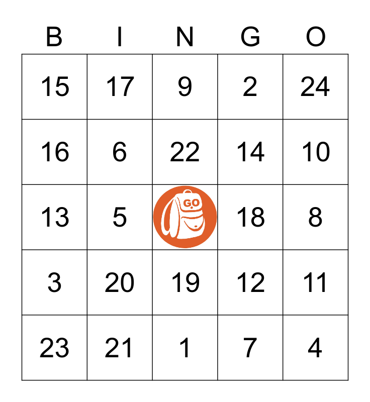 This bingo card has a free space and 24 words: 20, 21, 22, 23, 24, 15, 16, 17, 18, 19, 14, 13, 12, 11, 6, 7, 8, 9, 10, 5, 4, 3, 2 and 1.