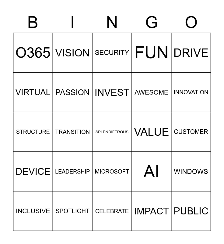 This bingo card has a free space and 106 words: CSAM, CSA, DRIVE, GROWTH, AWARDS, DATA, AZURE, MODERN, CSU, CONNECTED, CONSUMPTION, DELIVERY, SUPPORT, UNIFIED, CLOUD, TEAMS, SECURITY, SERVICE, COLLABORATION, PLAN, MICROSOFT, POWER, TRANSFORM, EVOLUTION, CHALLENGE, LEADERSHIP, INNOVATION, FUN, TOGETHER, DIVERSITY, AI, IMPACT, TECHNOLOGY, DIGITAL, SOLUTION, ANZ, HYBRID, EMPOWER, INVEST, APP, SKILLS, PARTNER, DYNAMICS, DEVICE, FY23, VIRTUAL, PROGRAM, O365, SUCCESS, PUBLIC, ENTERPRISE, SPOTLIGHT, SHARE, INSIGHT, DEVOPS, OFFICE, PRIZES, ACCOUNT, DETERMINATION, VISION, CHANGE, CE, LEARN, DEVELOP, TRANSFORMATION, STRATEGY, SYSTEM, WORK, AWESOME, STRUCTURE, TRANSITION, CELEBRATE, COMMUNITY, HIGHLIGHTS, CAREER, BUILD, TRUST, EXCELLENCE, GLOBAL, IMPROVE, ACCESS, SUSTAINABILITY, AUSTRALIA, NEW ZEALAND, INSPIRE, OFFERINGS, VALUE, ACHIEVE, TRUST, PRIORITY, INDUSTRY, ENCOURAGEMENT, IOT, GOALS, COMMUNICATE, WINDOWS, LEARN, INCREASE, SPOTLIGHT, CUSTOMER, PASSION, INNOVATE, AMAZING, NEW, INCLUSIVE and WIN.