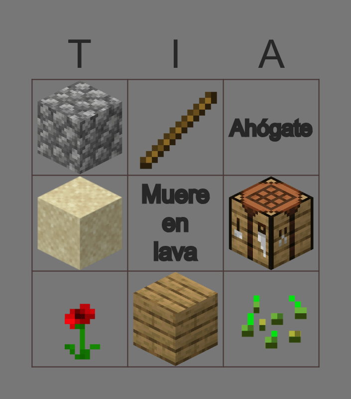 This bingo card has 7 images and 2 words: Ahógate and Muere en lava.