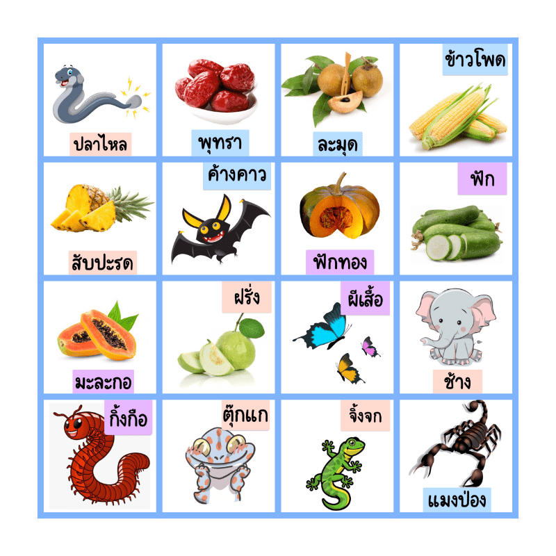 This bingo card has 20 images.