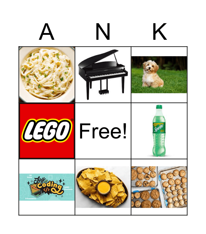 This bingo card has 24 images and a free space.