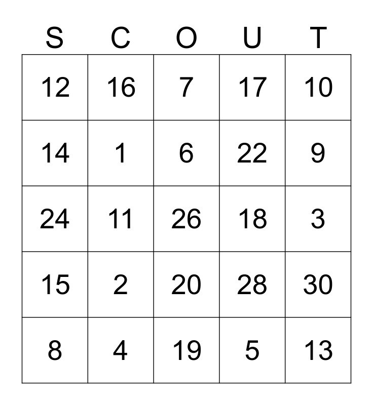 This bingo card has a free space and 24 words: 2, 4, 6, 8, 10, 12, 14, 16, 18, 20, 22, 24, 28, 30, 1, 5, 3, 7, 9, 11, 13, 15, 17 and 19.