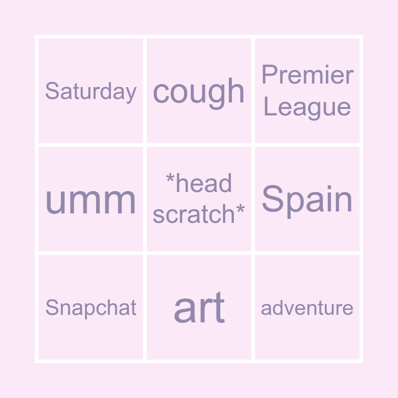 This bingo card has a free space and 35 words: #garths toughest challenge, Lees, cricket, Snapchat, athlete, umm, Spain, family, art, pints, festival, adventure, Sorrel, suspenders, Saturday, Schmeichel, Beckham, fitness, sport, oasis, leather, beer, race, Fergie, Premier League, football, guitar, stone, rings, cross country, self belief, memory, boyhood dreams, cough and lace.
